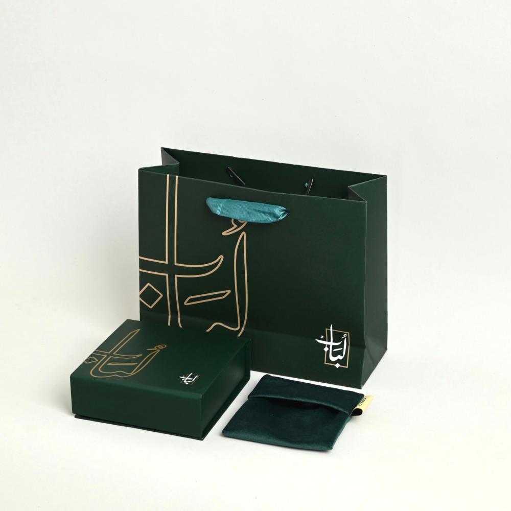 مزينة بثلاث فواصل فضية وطربزونة من الفضة الخالصة عيار 1000.