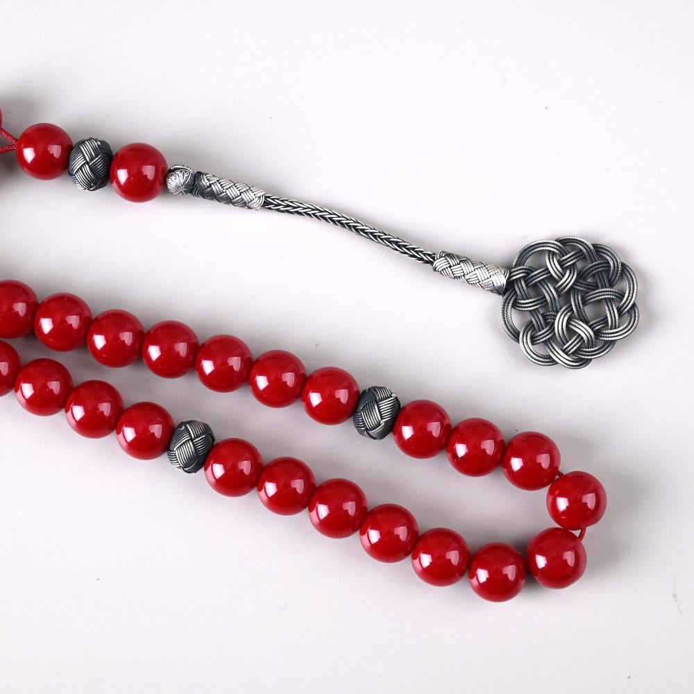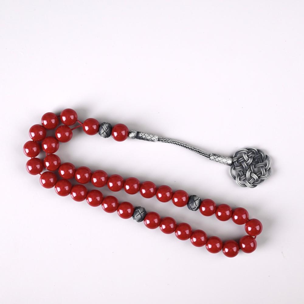 سبحة مميزة من المرجان الأحمر الطبيعي، مستخرج من أعماق البحر الأحمر.